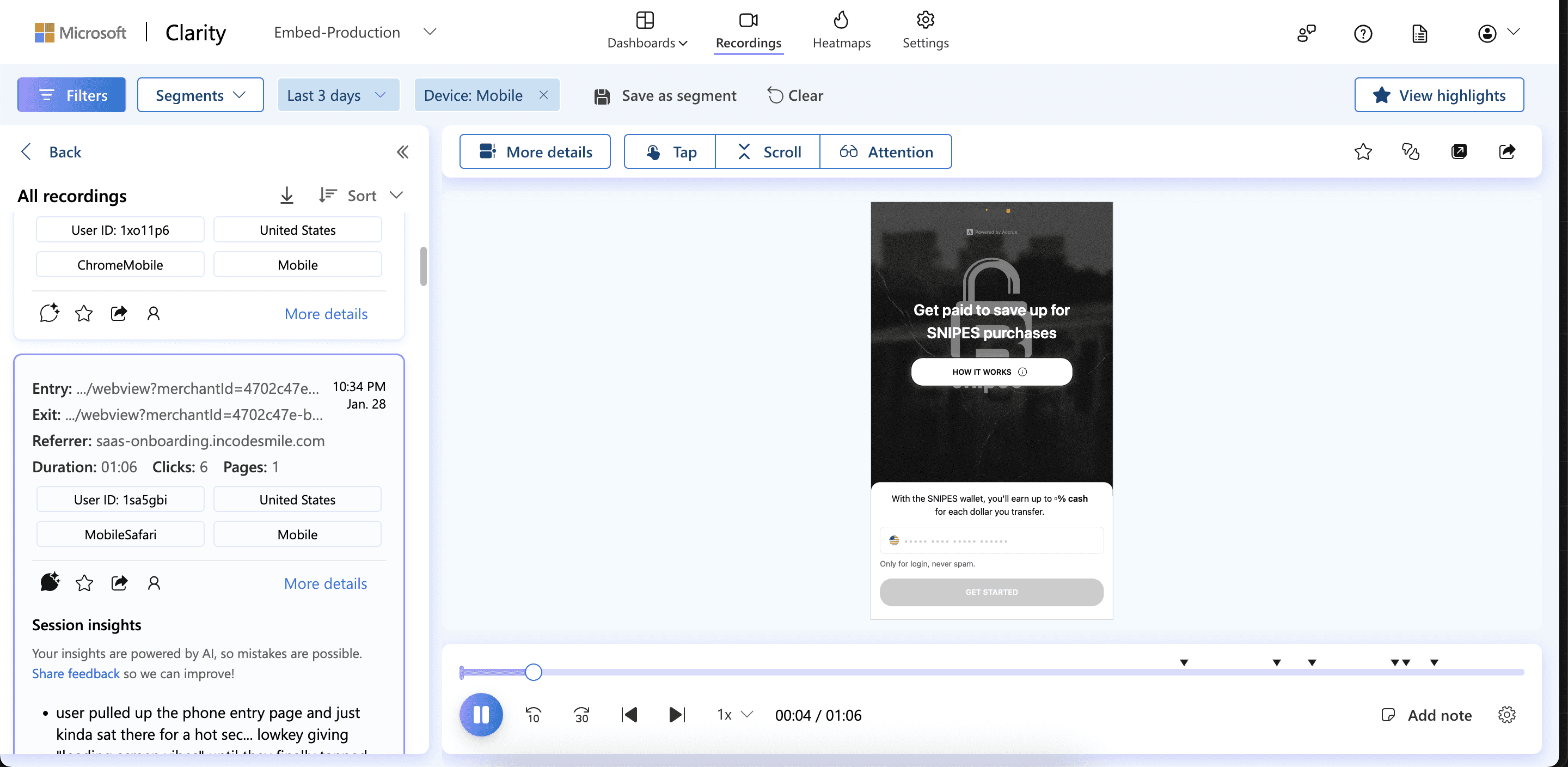 With these priorities set, we paired stakeholder workshops with user research using tools like Microsoft Clarity to analyze real user behavior. Session recordings and drop off insights helped us identify friction in the load cash and purchase flows, shaping a clear, data informed vision for a more intuitive experience.