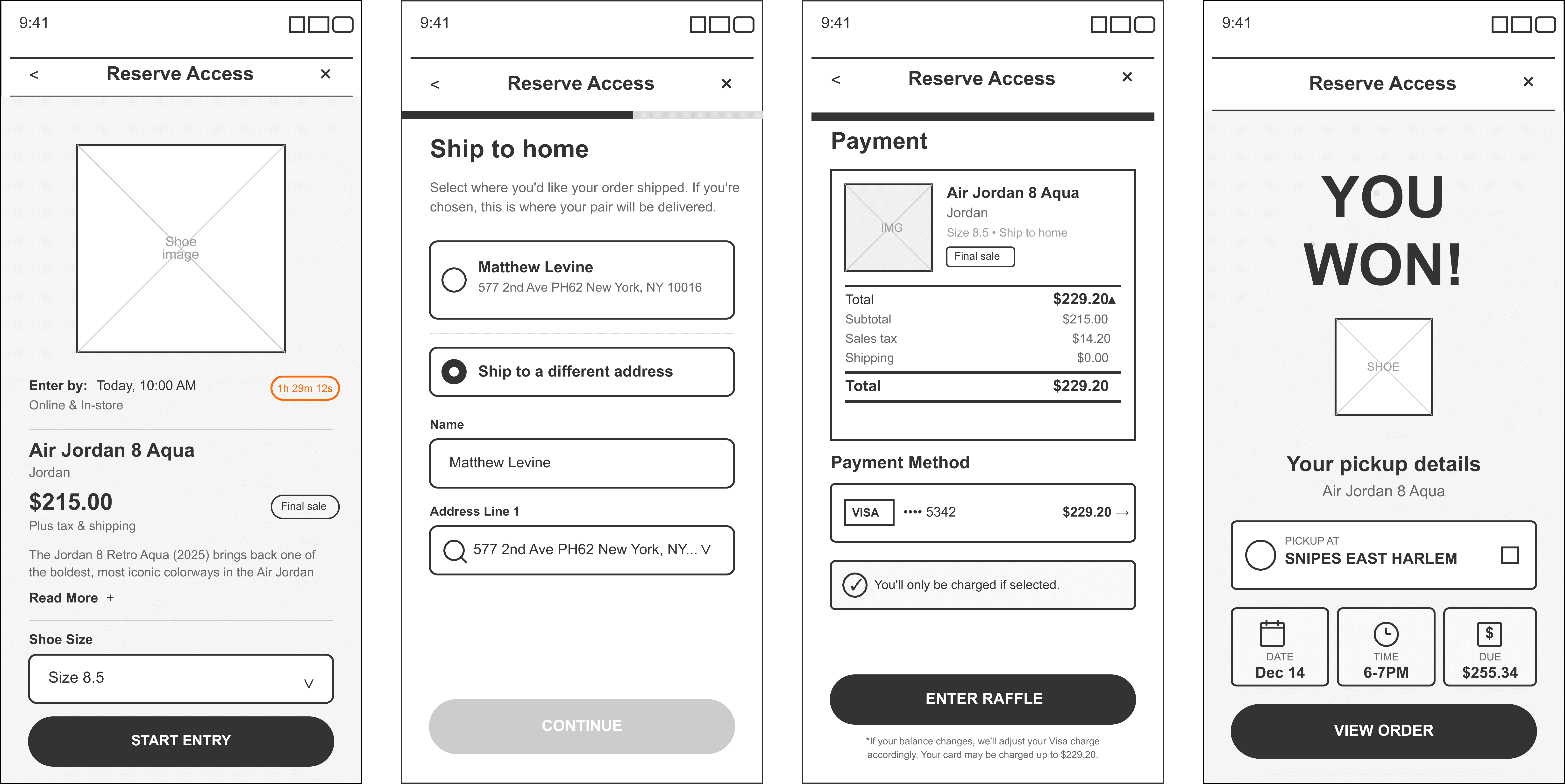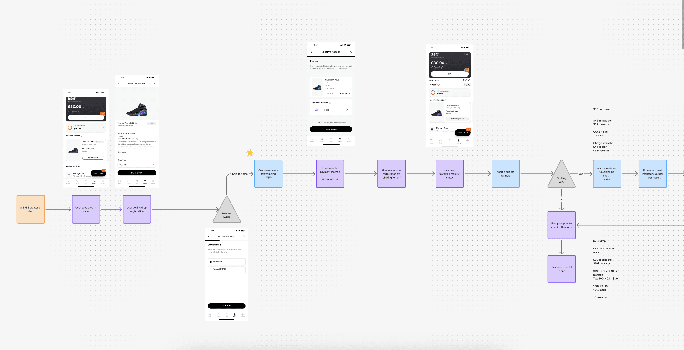 With these priorities defined, we worked closely with SNIPES shoppers and retail staff to understand how people enter, track, and pay for releases. Interviews and drop retros revealed confusion around payment holds, balance usage, and pickup expectations. Rapid sketches and prototypes explored clearer entry states and messaging, while reviewing competitor drop experiences highlighted opportunities to reduce uncertainty and last-minute cart friction.