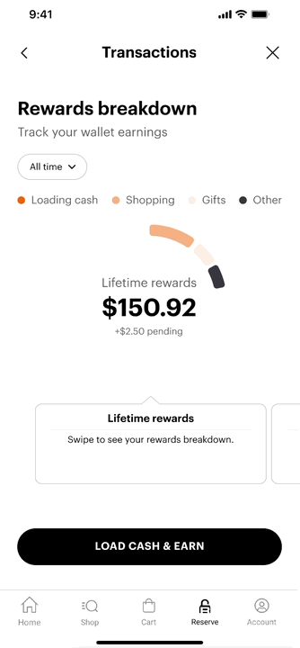 Customers can see the total value they’ve earned over time, reinforcing that keeping funds in the wallet pays off. By highlighting accumulated rewards, the experience shifts from saving money on a single purchase to building long-term value with every interaction.
