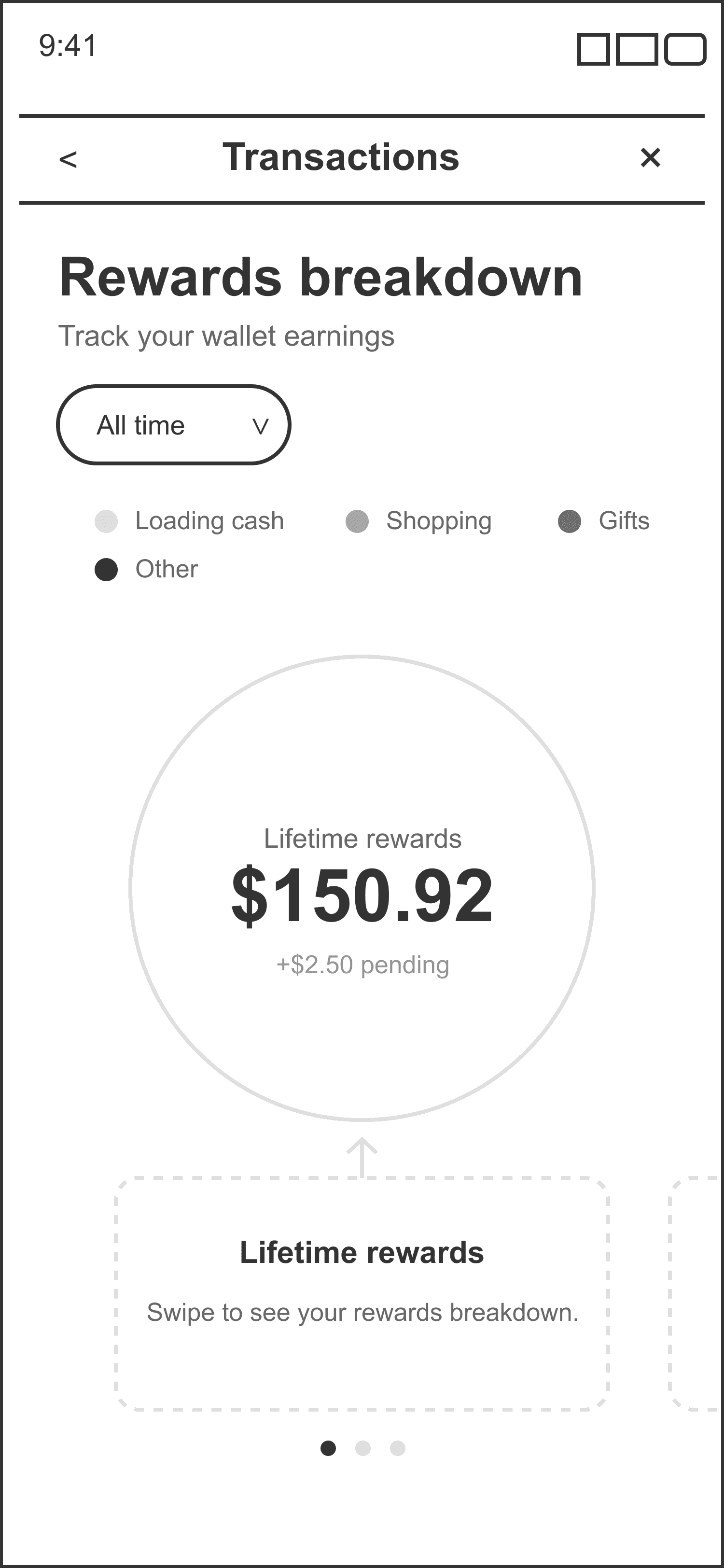 The wallet tracks total rewards earned over time, reinforcing long-term value and encouraging continued use instead of one-off purchases.