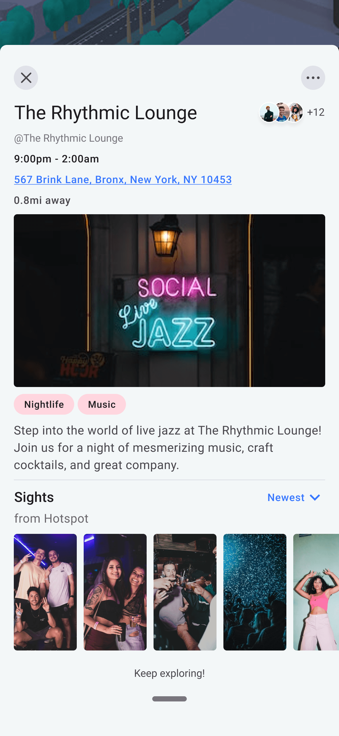 Navigate your surroundings with a real-time 3D map, designed to make event discovery and social exploration effortless.