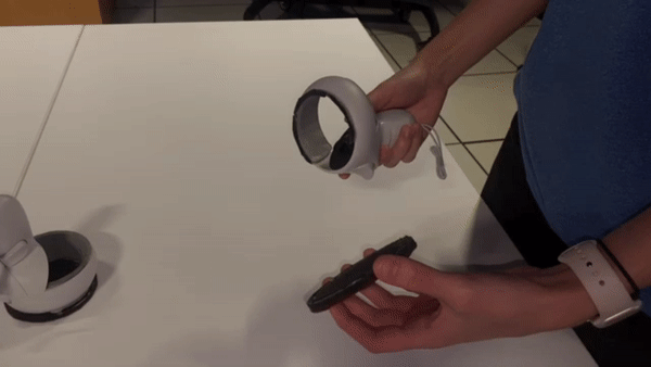 To enhance realism, players attach 3D-printed components with soft padding to their VR controllers. These attachments mimic real air hockey strikers, providing tactile feedback as they glide across the table’s surface. The padding protects both the table and controllers from wear while improving control and precision during gameplay.
